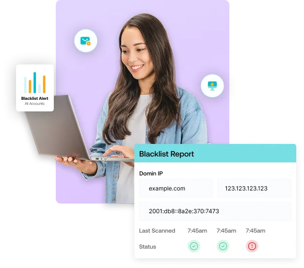 Avoid costly deliverability setbacks by staying off blacklists. bounce clear monitors IPs and domains, sending early warnings when threats appear, keeping campaigns healthy and inbox-ready.