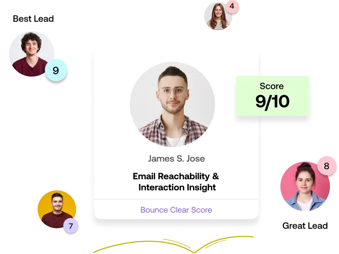 Analyze engagement potential before sending a single email. Bounce clear AI engine evaluates deliverability, domain health, and behavioral data to score accuracy, ensuring impactful outreach performance.